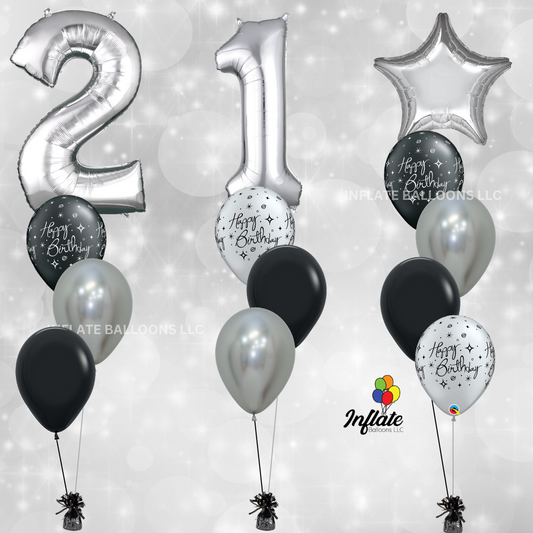 Elegant Silver Numbers & Balloon Bundles