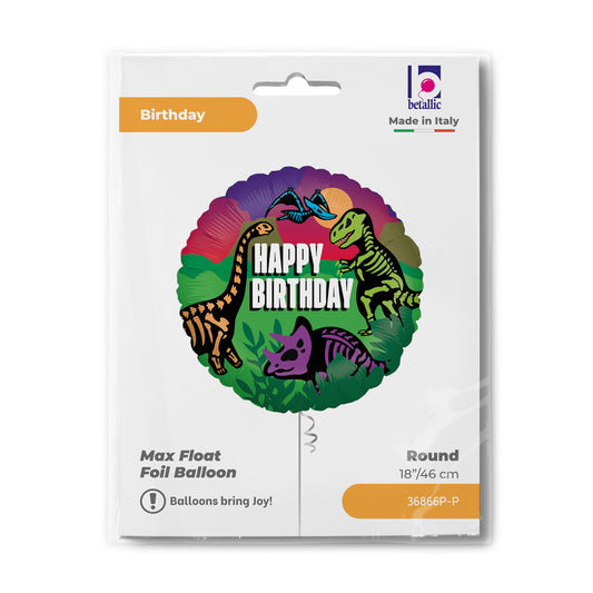 18" Happy Birthday Dinosaur Foil Balloon