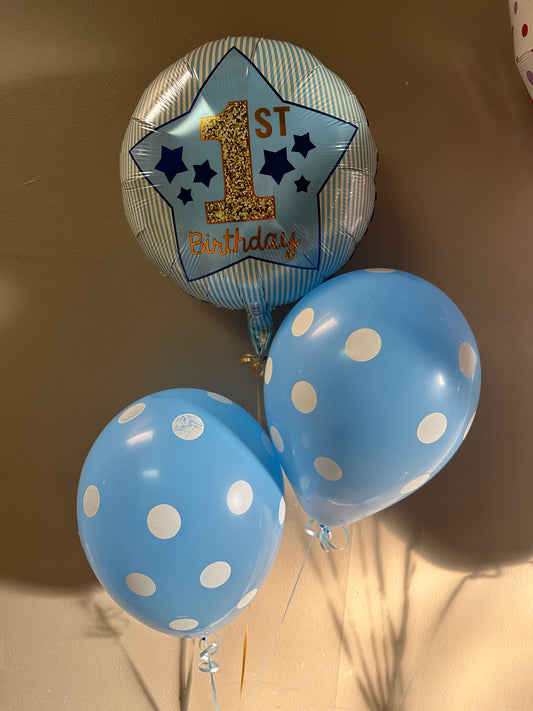 1st Birthday Blue & Gold Foil & Latex Bouquet