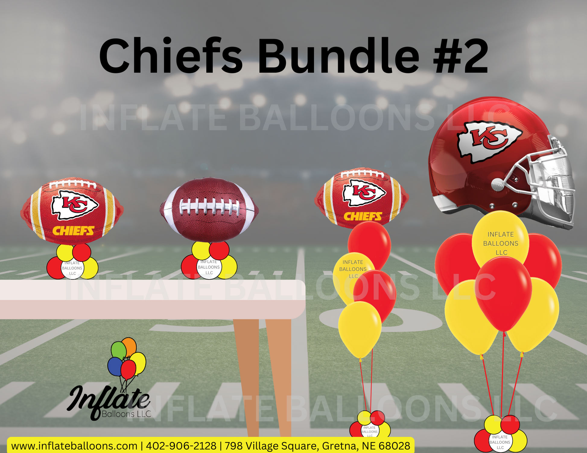 - 2 - 20" Air-Filled Table Topper arrangements. (1 standard football, 1 Chiefs football)