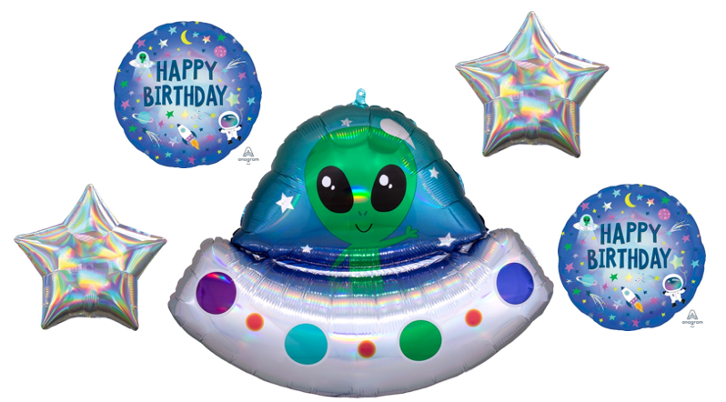 - 1 Super-shape, 28" Alien spaceship. iridescent holographic.