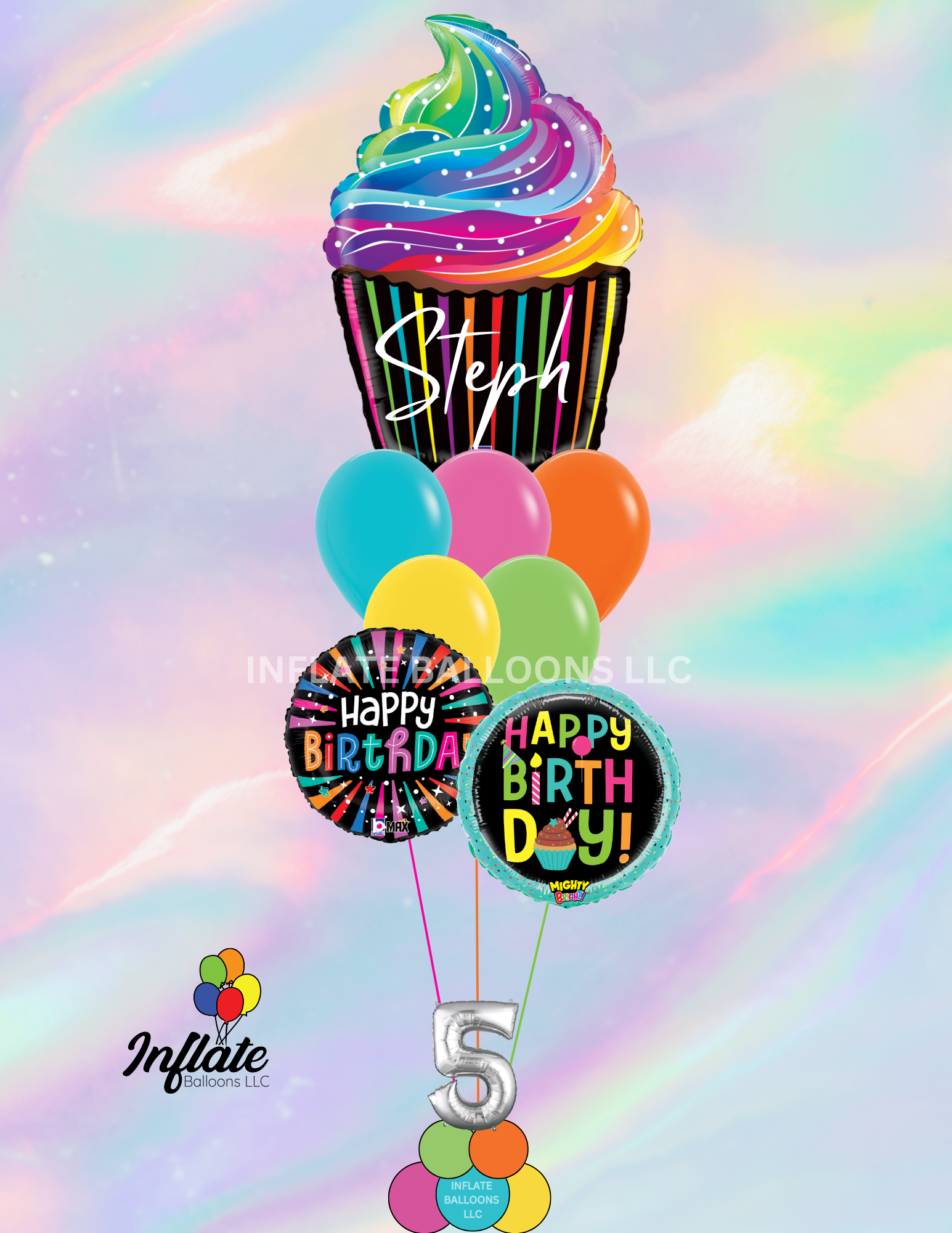- 1 - 27" Rainbow Cupcake - SuperShape. Personalized (leave the recipient's name in the order notes at checkout)