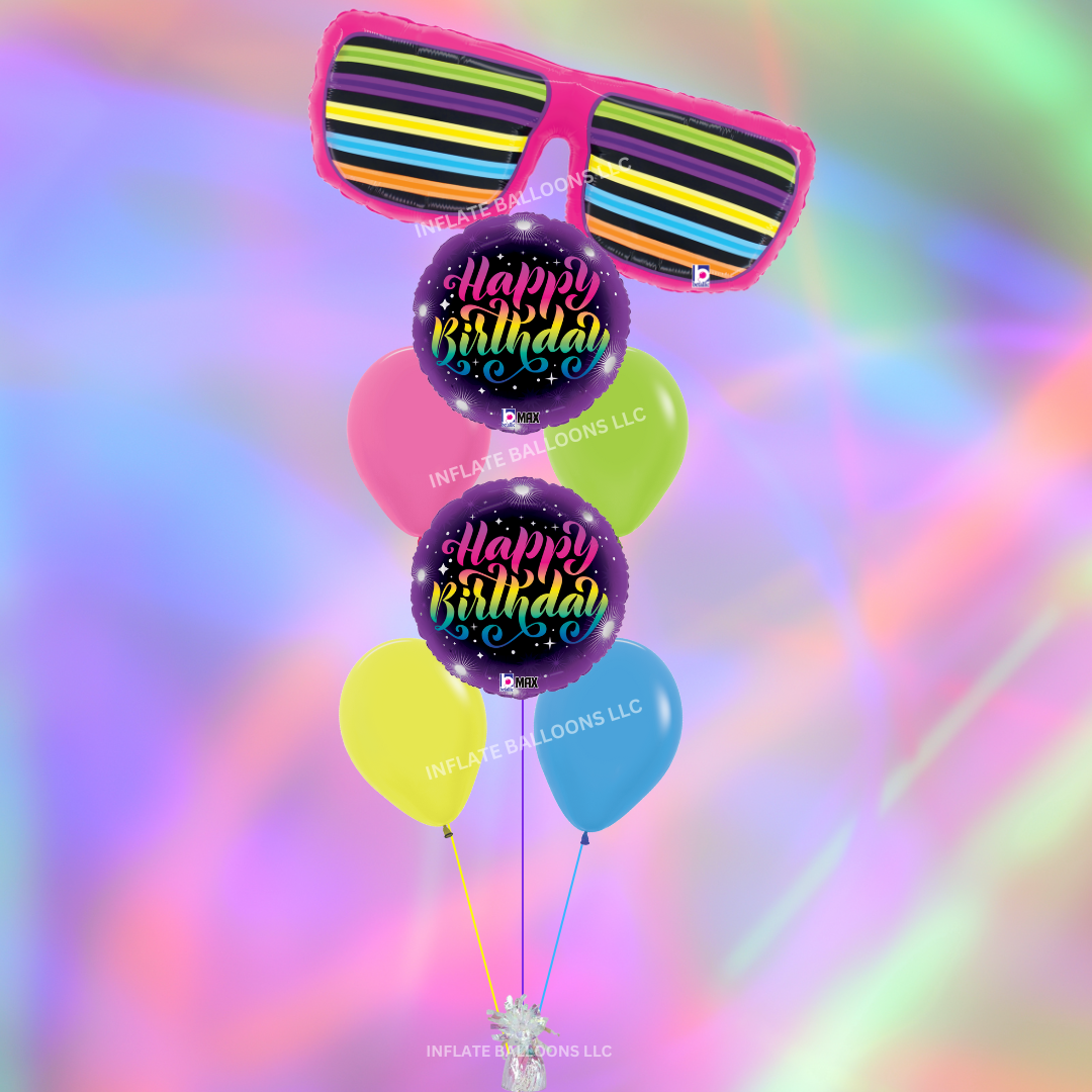 Happy Birthday - Mixed Neon - Balloon Bouquet