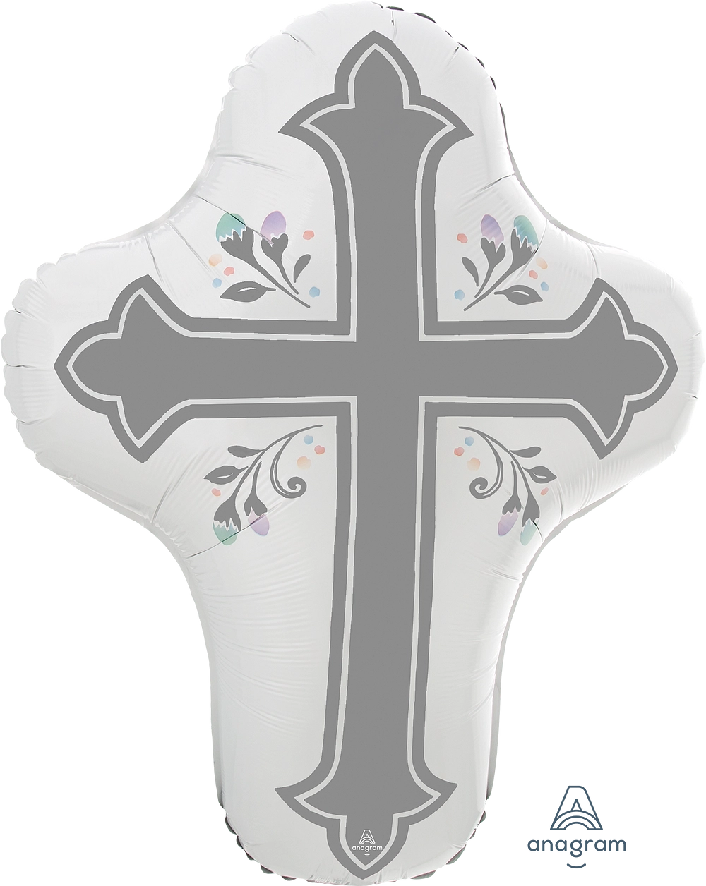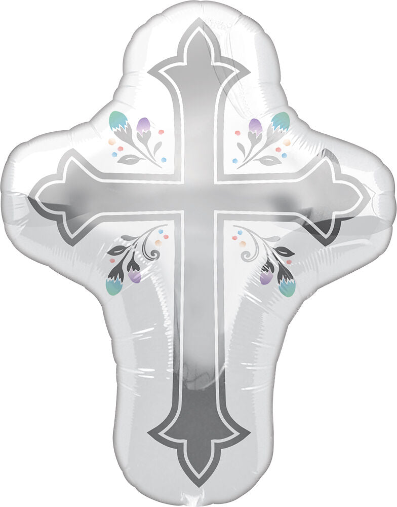 The Holy Day Cross is a beautiful silver cross with white background balloons. Fabulous on special days to commemorate a joyful occasion. It is a timeless symbol of faith that will bring light and joy to any space.