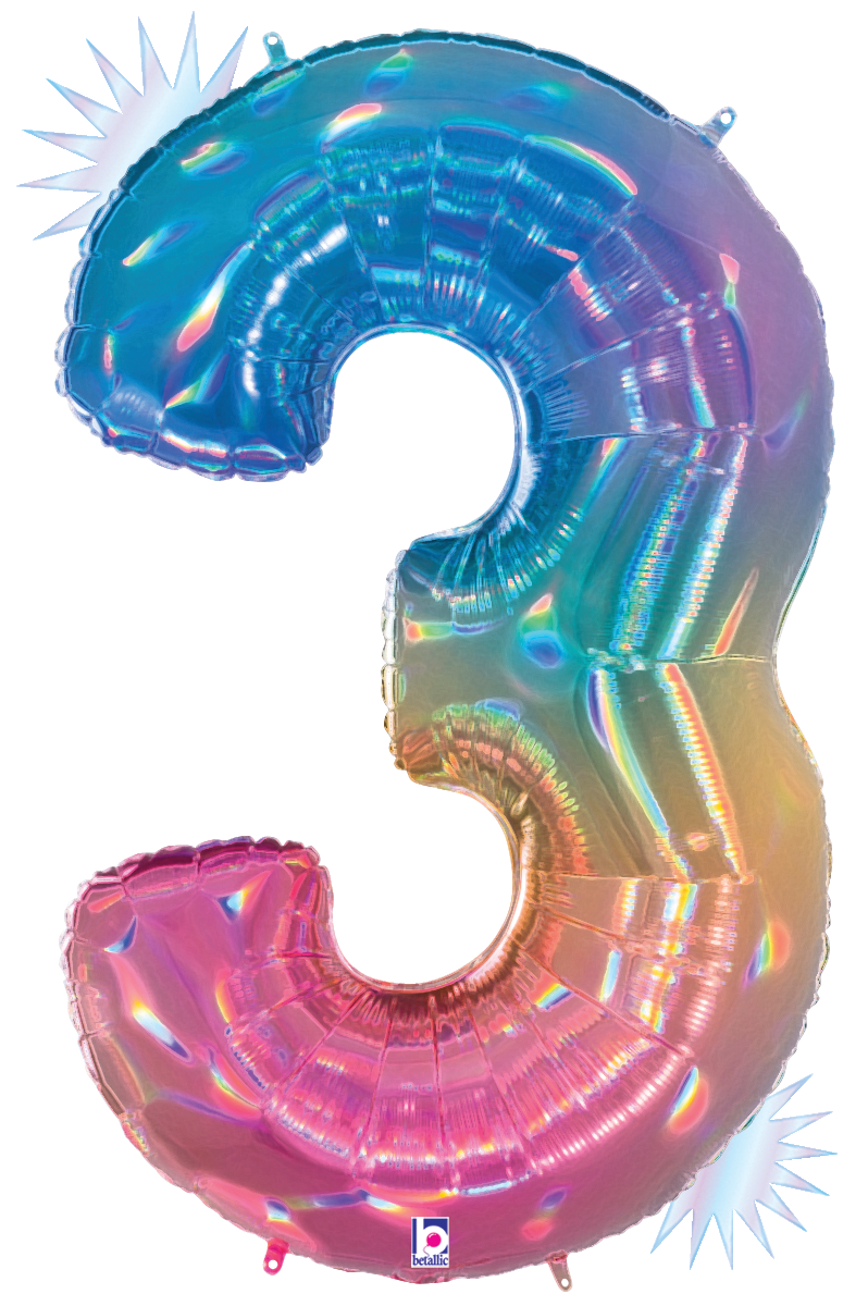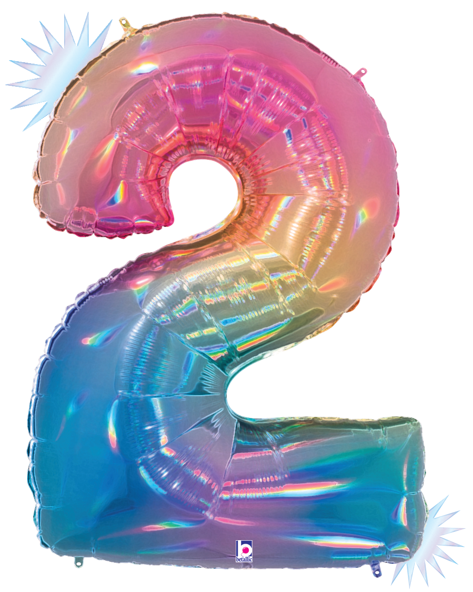 40" Holographic Opal Rainbow Numbers. Mylar foil balloon