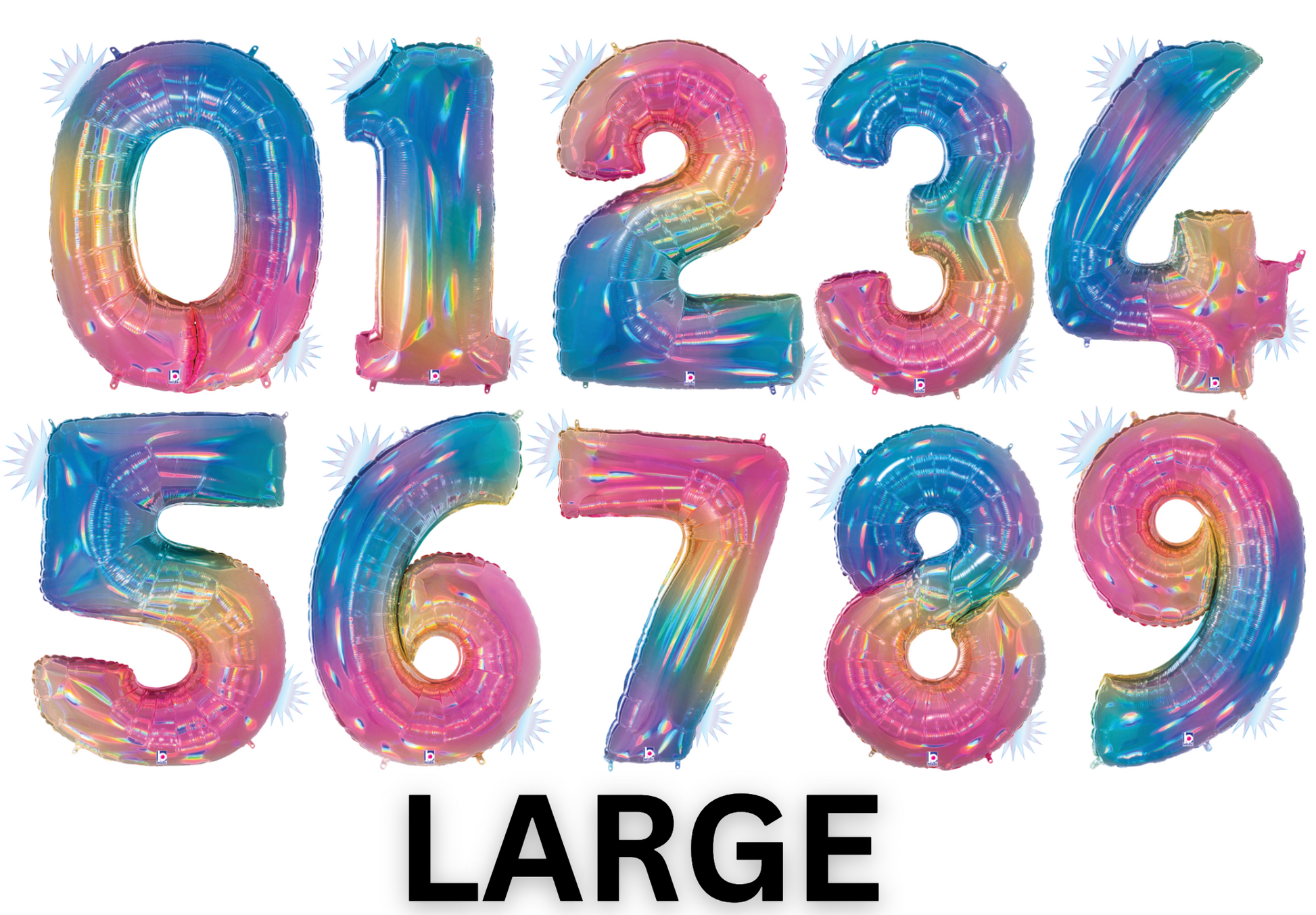 These substantial 40" opal rainbow numbers are sure to add a unique sparkle to any project. The holographic opal sheen gives the numbers a beautiful rainbow effect and their large size makes them easy to see in any venue. Bring your projects to life with these eye-catching numbers.
