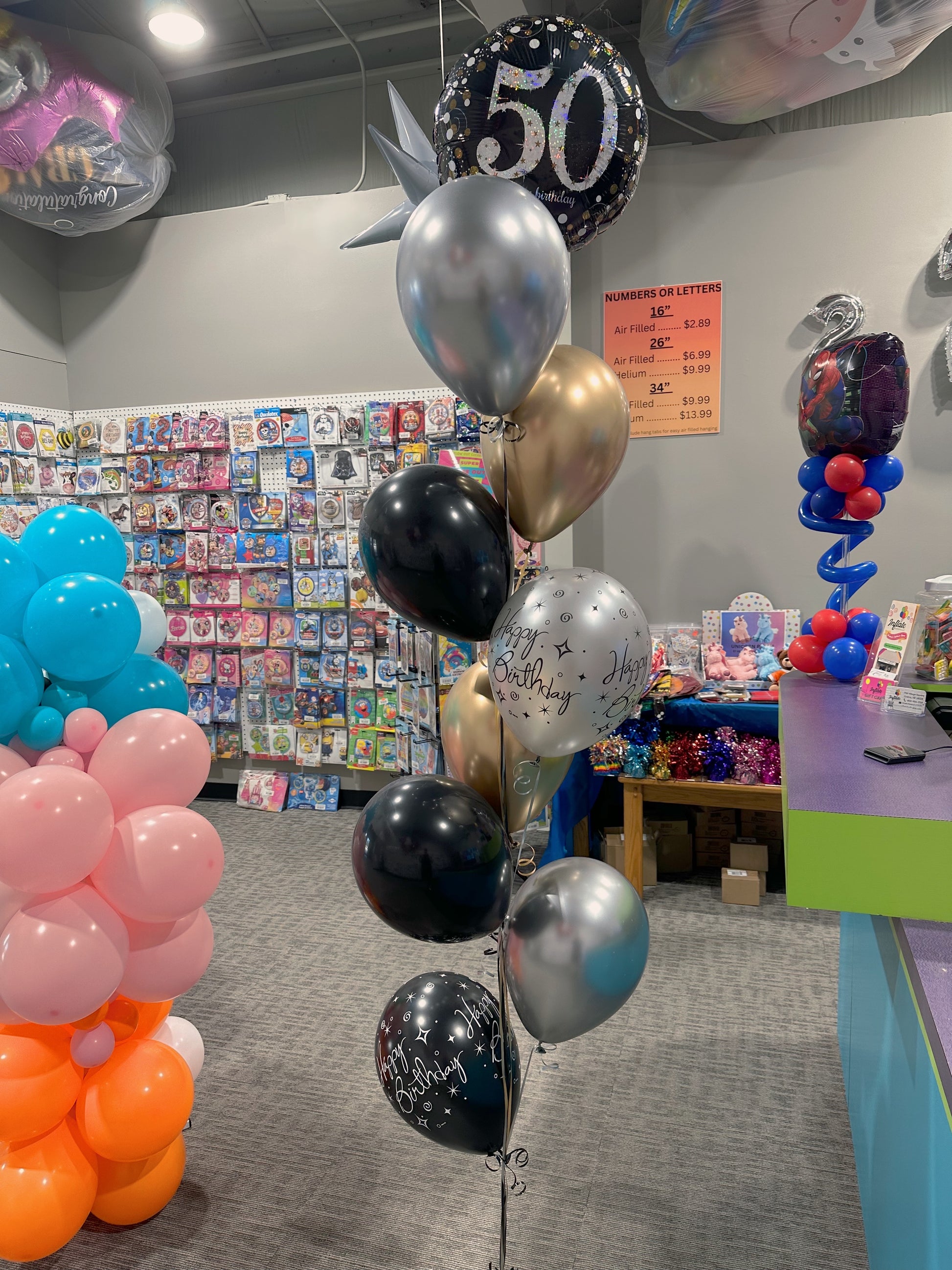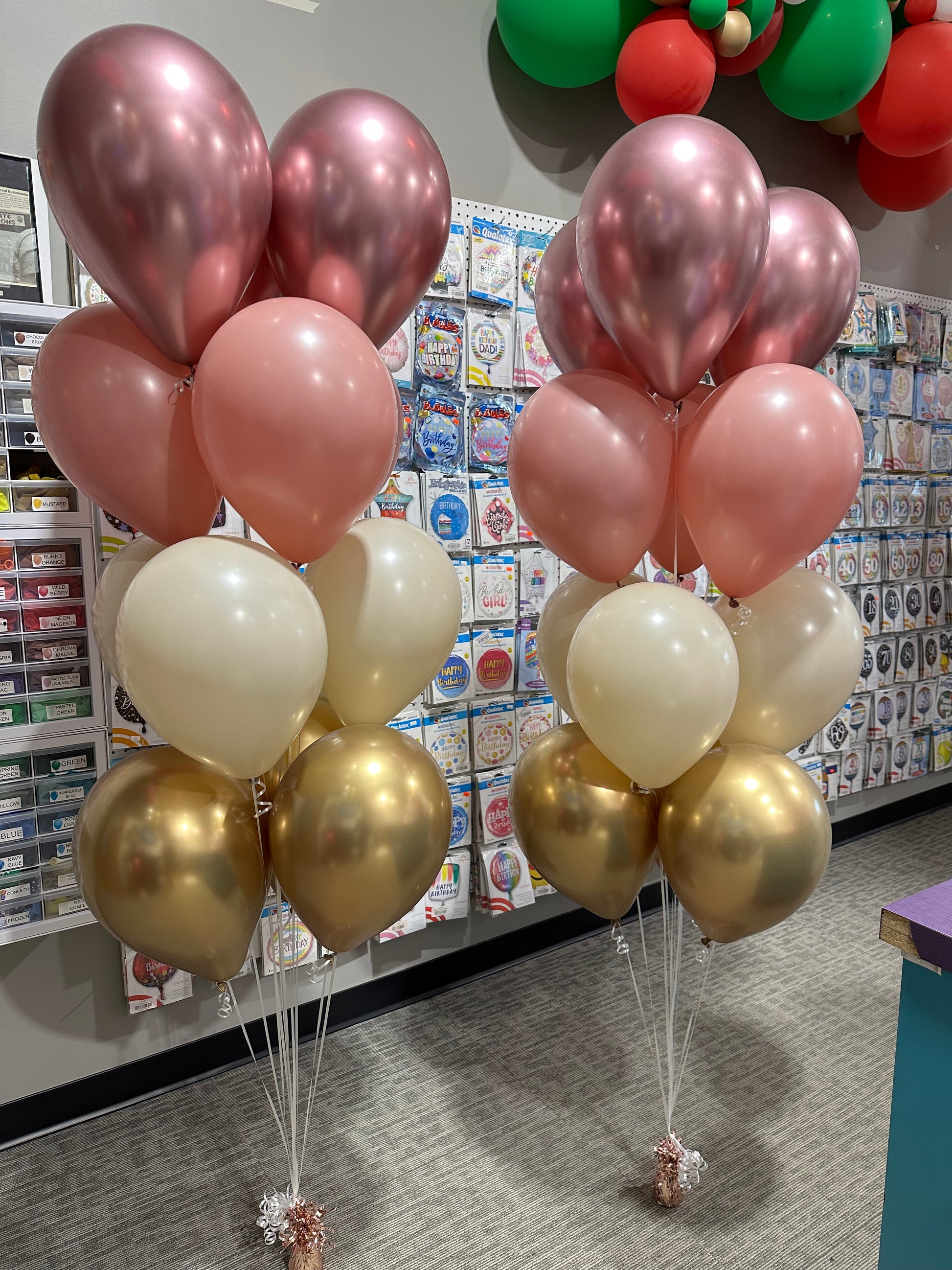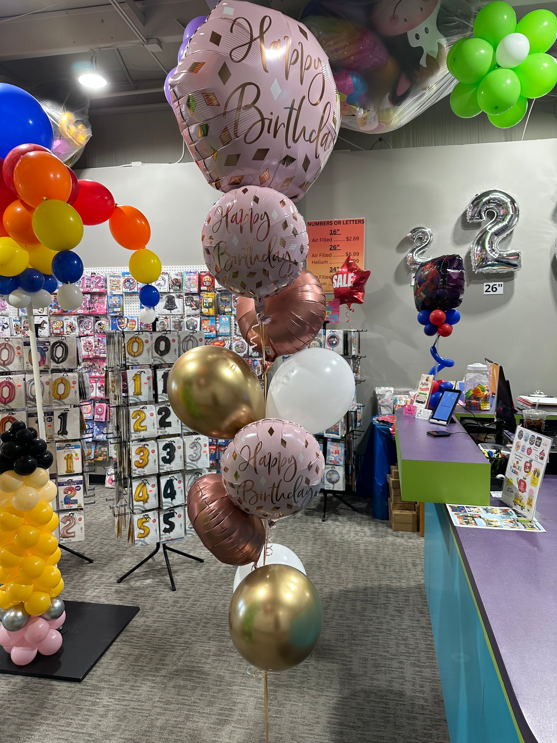 To make a helium balloon bouquet you can add all the balloons you would like in your bouquet to your cart. Leave a note how you would like the balloons arranged. If you would like multiple bouquets leave detailed notes. Don't forget your weights.