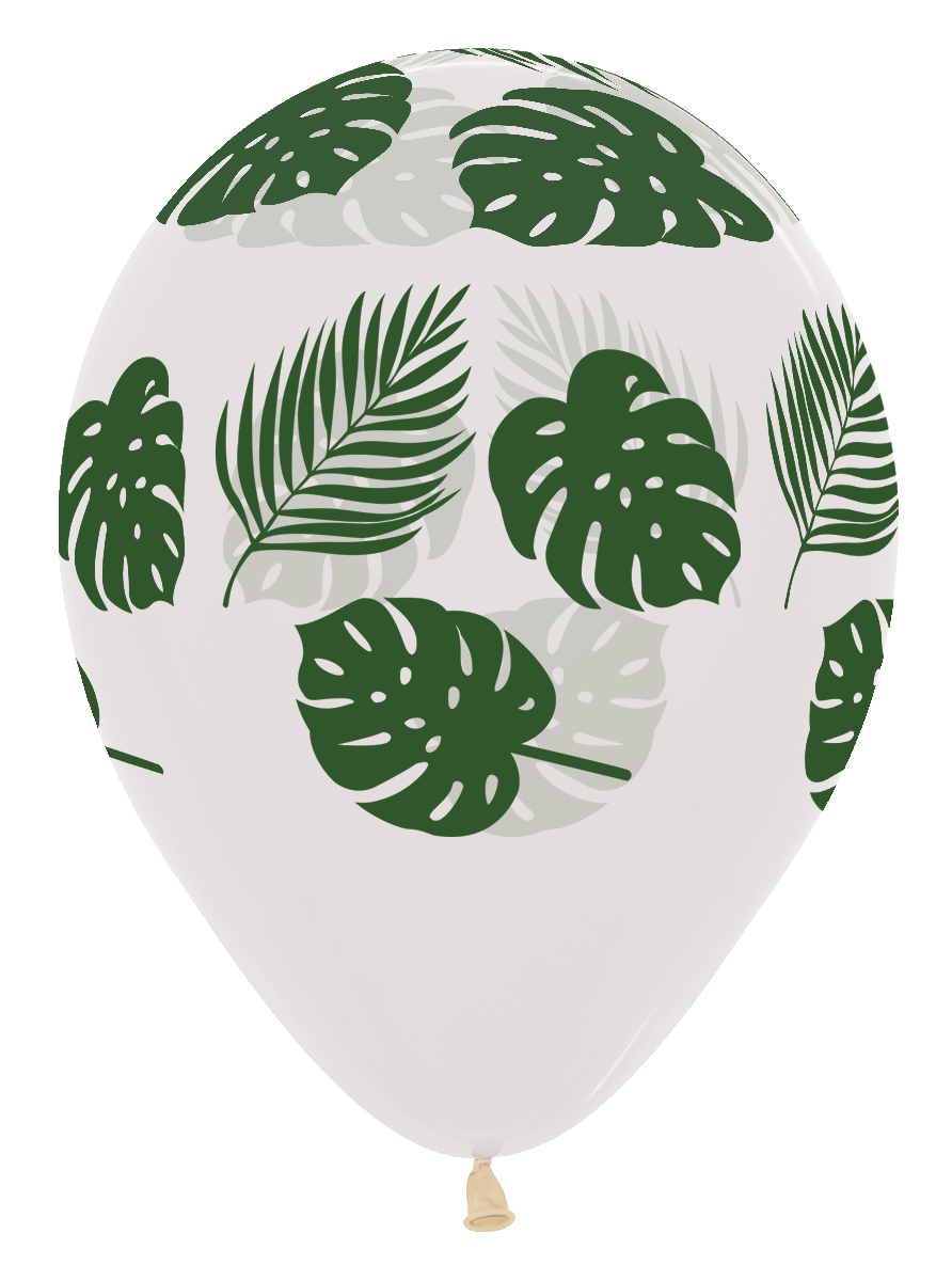 Size: 11" clear latex balloon with printed palm fronds