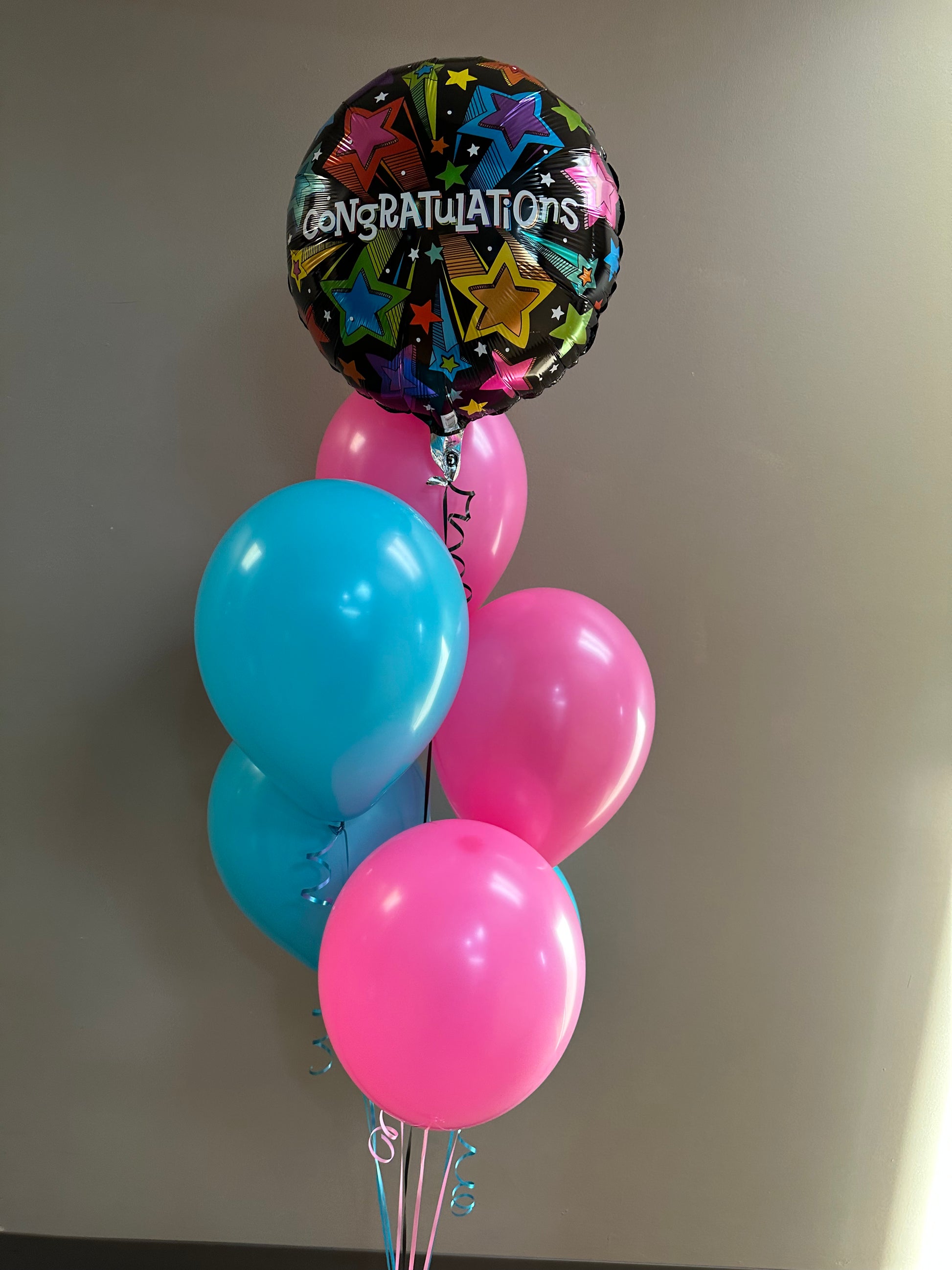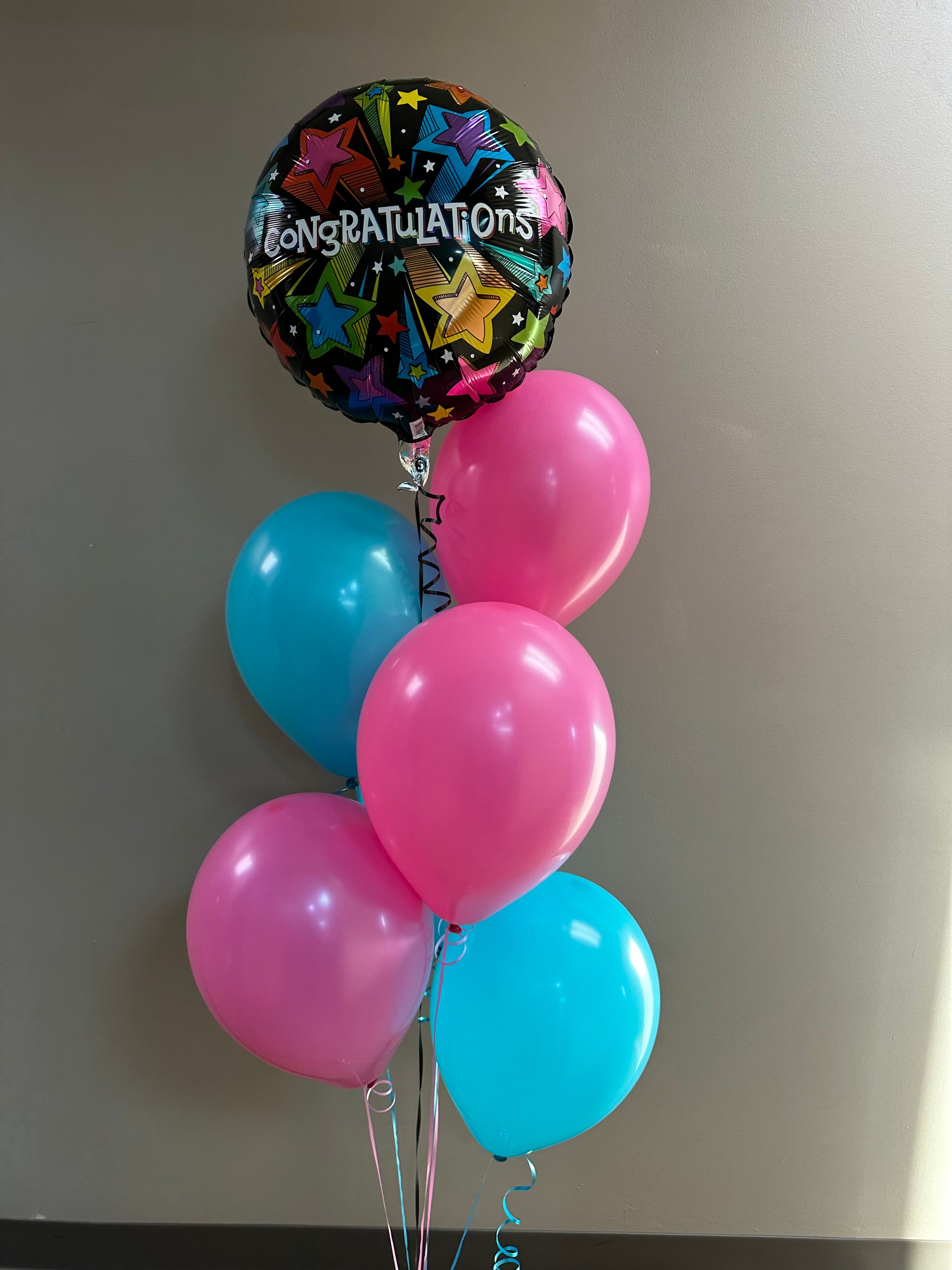 To make a helium balloon bouquet you can add all the balloons you would like in your bouquet to your cart. Leave a note how you would like the balloons arranged. If you would like multiple bouquets leave detailed notes. Don't forget your weights.