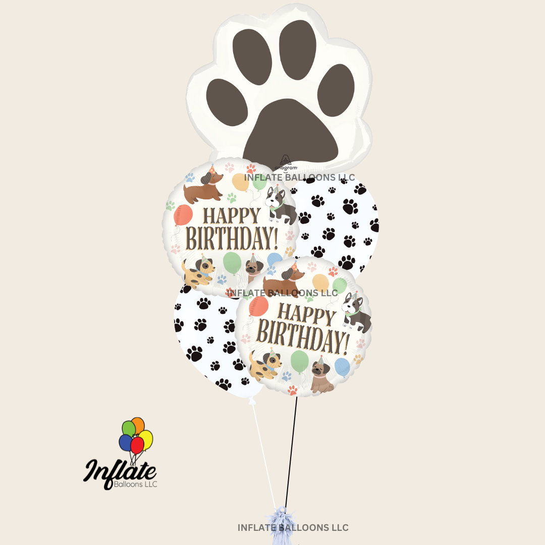 This balloon bouquet bundle includes the following 5 balloons attached to one standard weight.