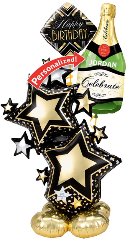 This balloon is personalized on one side with vinyl press-on letters. The size, color, and shape of the letters may vary from what is shown.