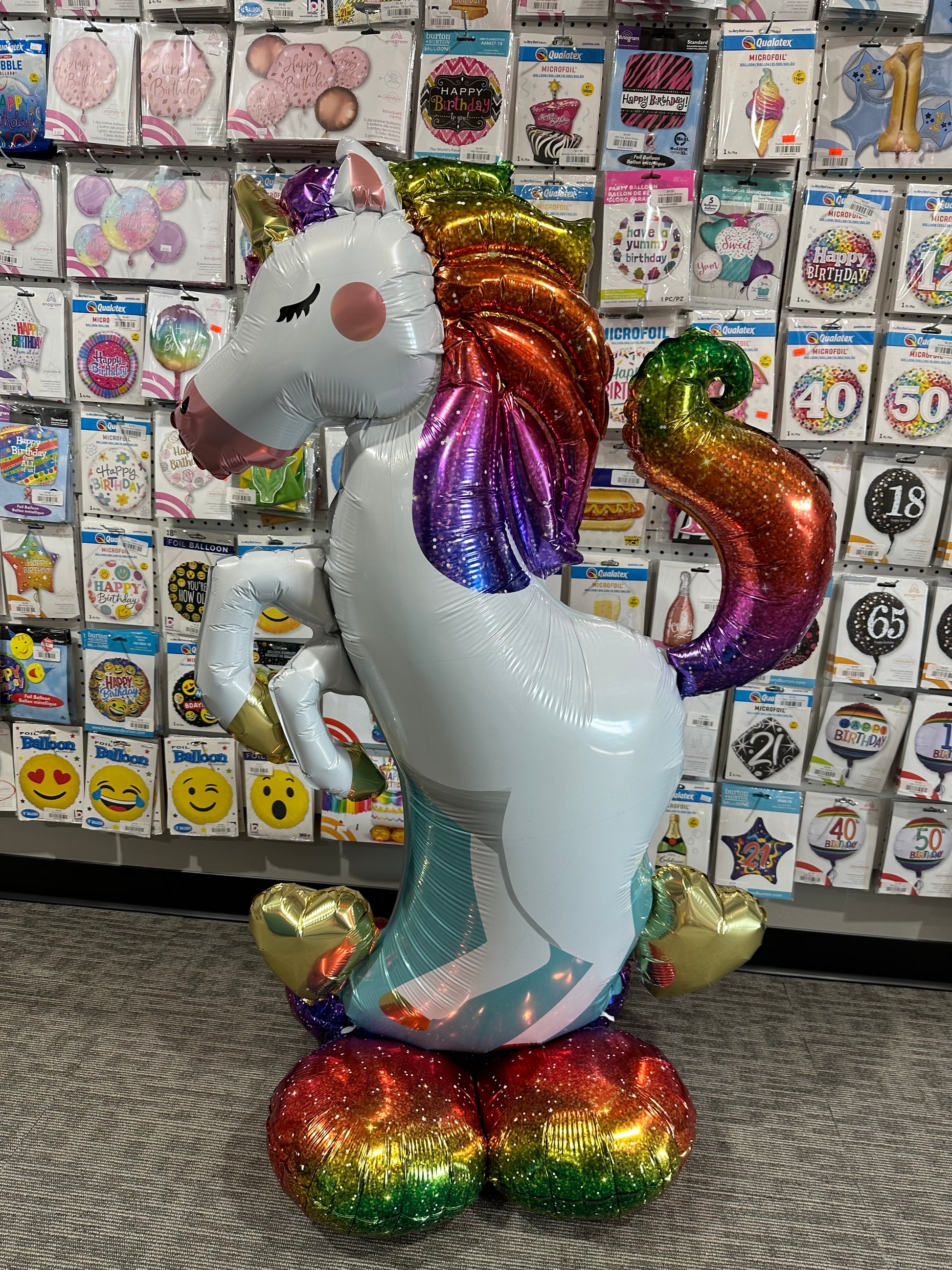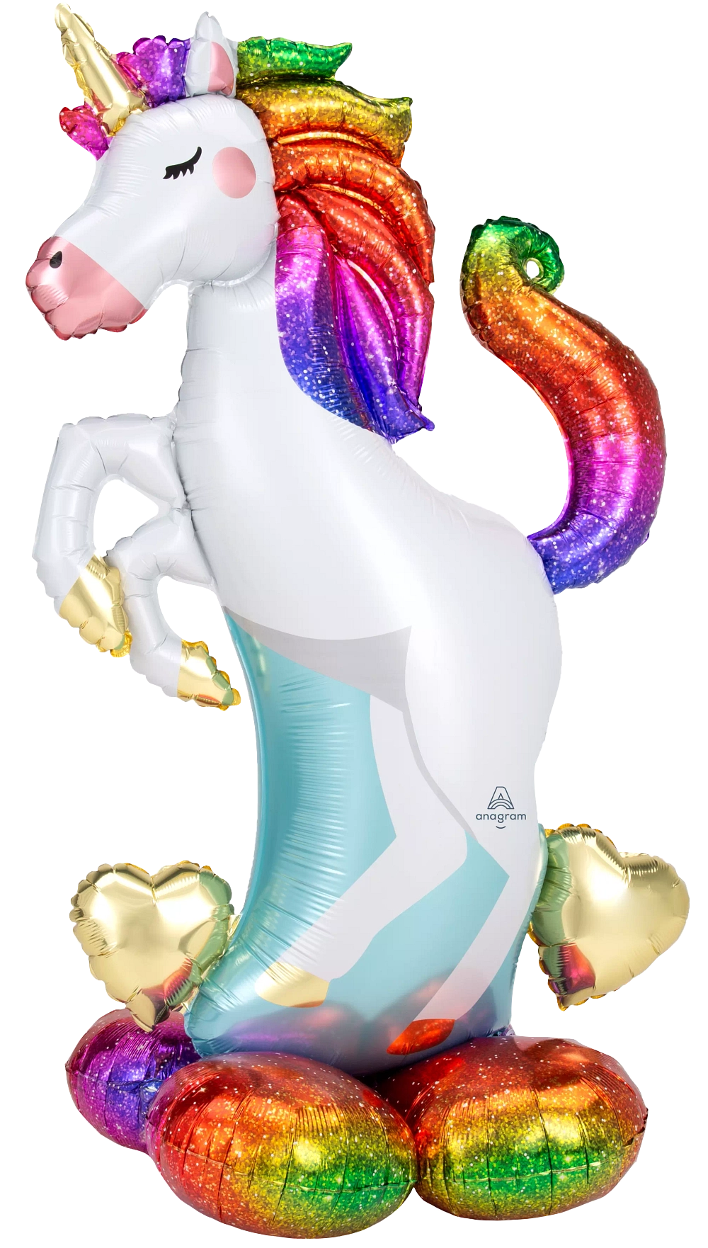 Let your child's fantasies run wild with this Rainbow Unicorn Airloonz! This life-sized balloon is both adorable and magical, with its fluffy rainbow mane and vibrant colors. Don't be surprised if your little one insists this gently-breathing unicorn is the newest member of the family! Cuteness overload!