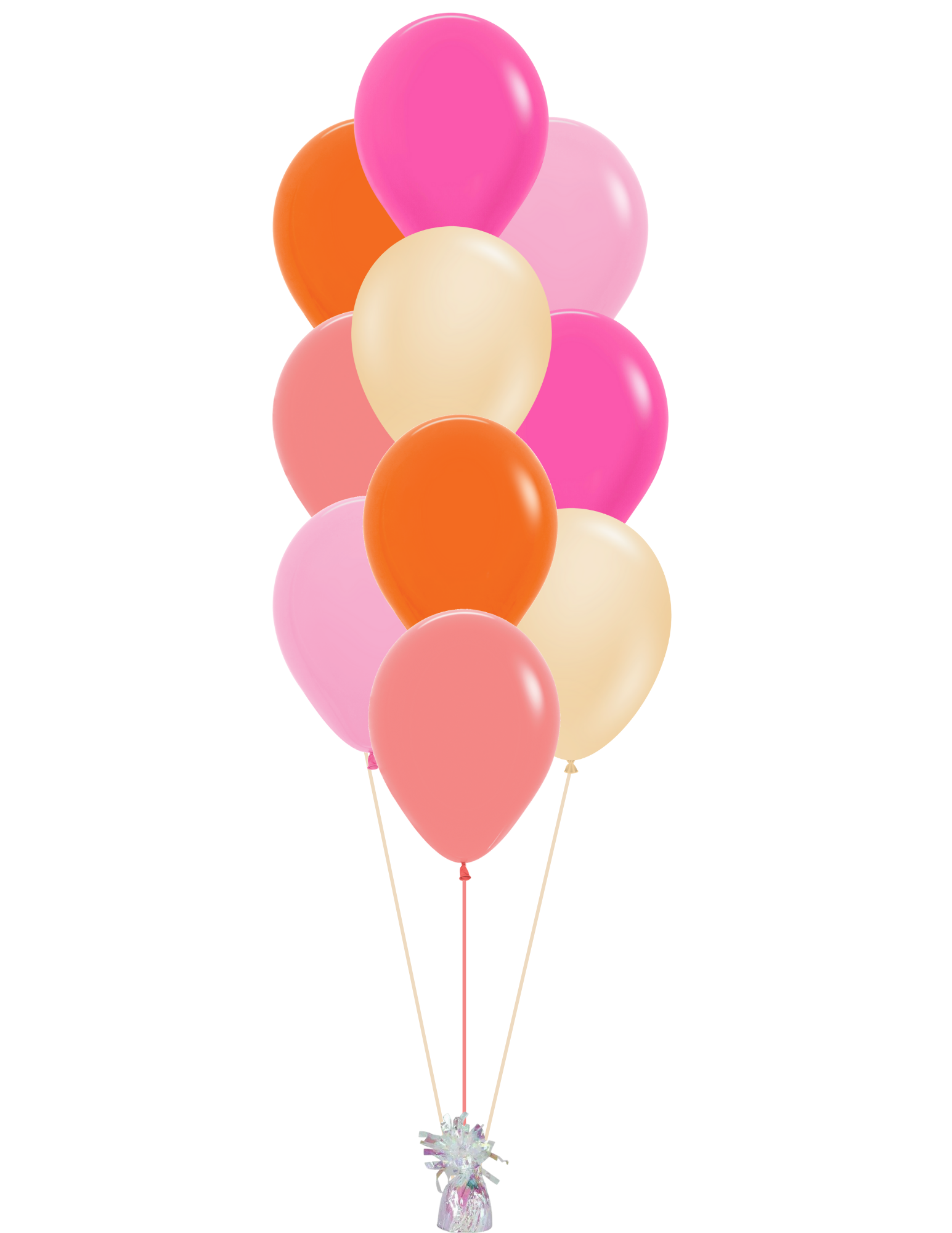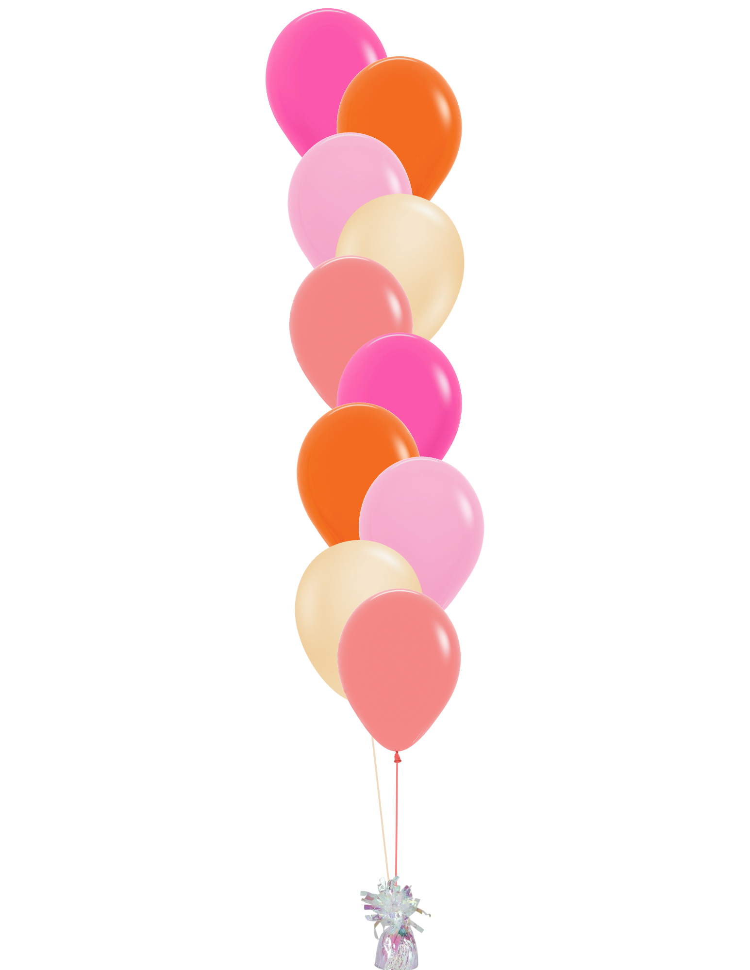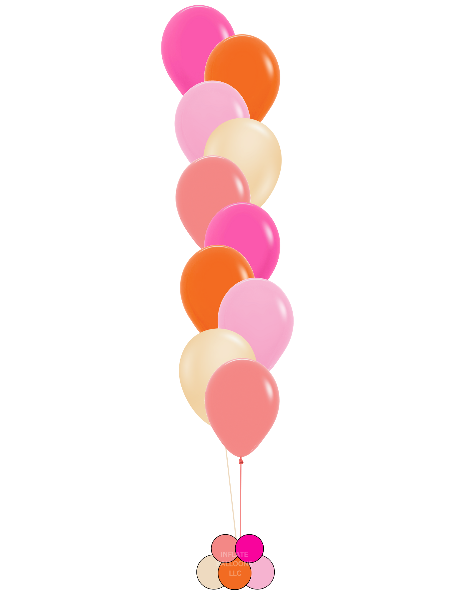 The tropical sun bunch includes the following 10 or 5 balloons. Your choice of arrangement and weight.