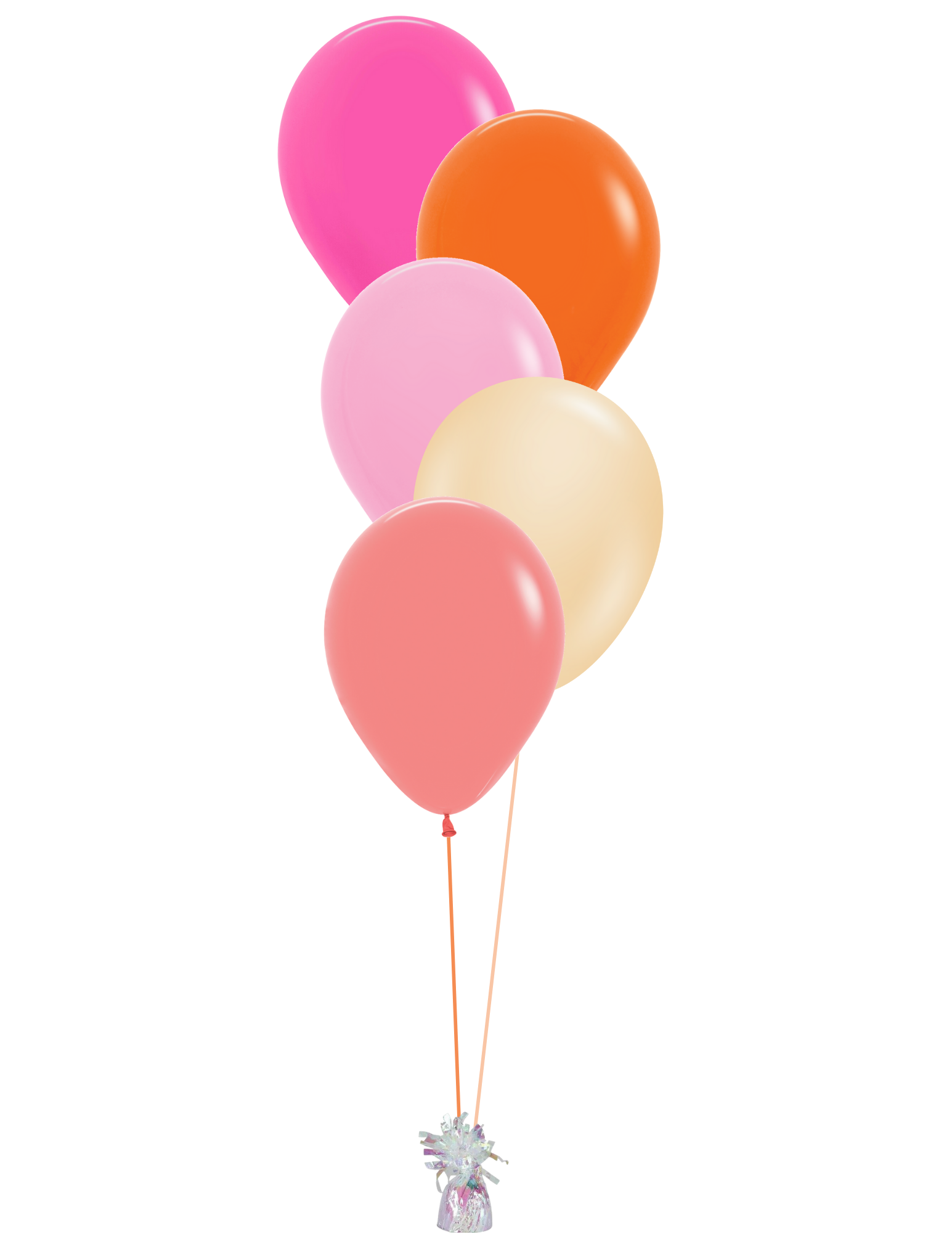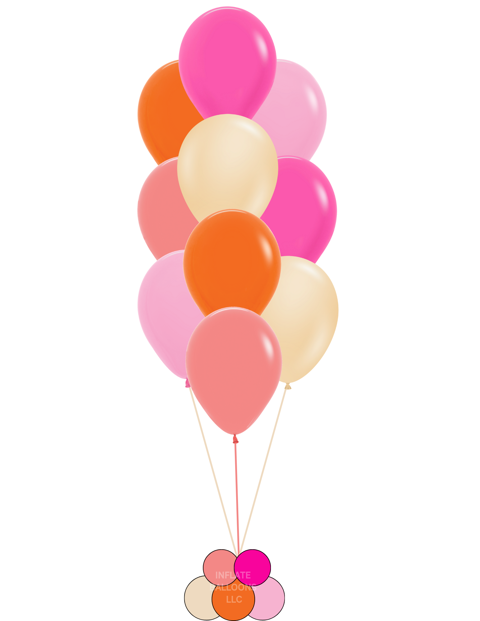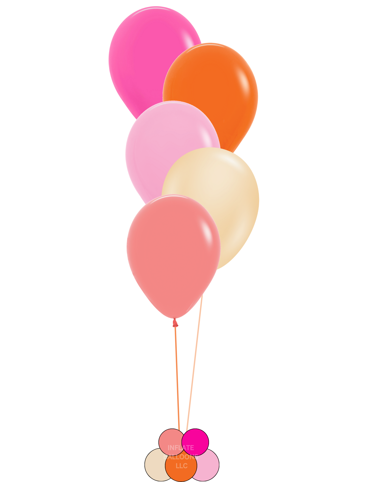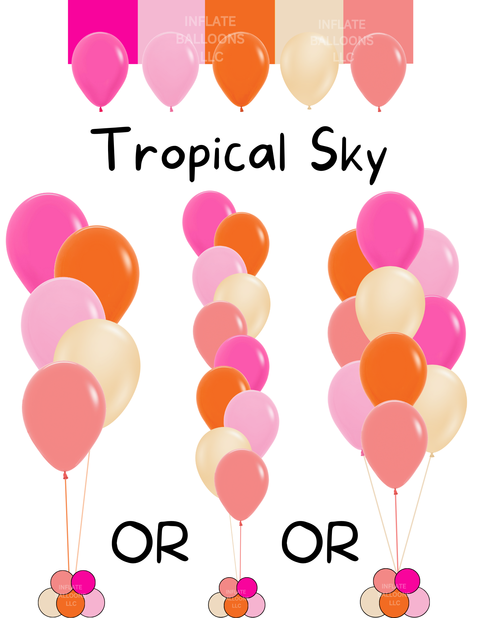 The tropical sun bunch includes the following 10 or 5 balloons. Your choice of arrangement and weight.